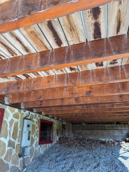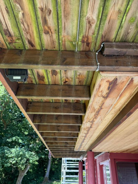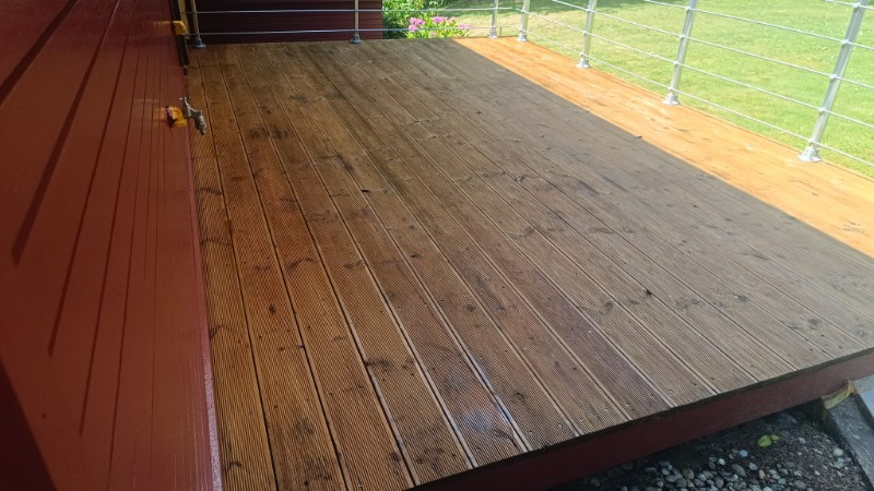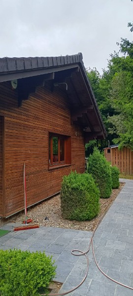 Les surfaces ont d’abord fait l’objet d’un ponçage complet, suivi d’une recherche approfondie de la teinte afin d’obtenir un rendu parfaitement harmonieux. Trois couches de lasure opaque ont ensuite été appliquées dans la teinte choisie, garantissant une protection durable et une esthétique soignée.